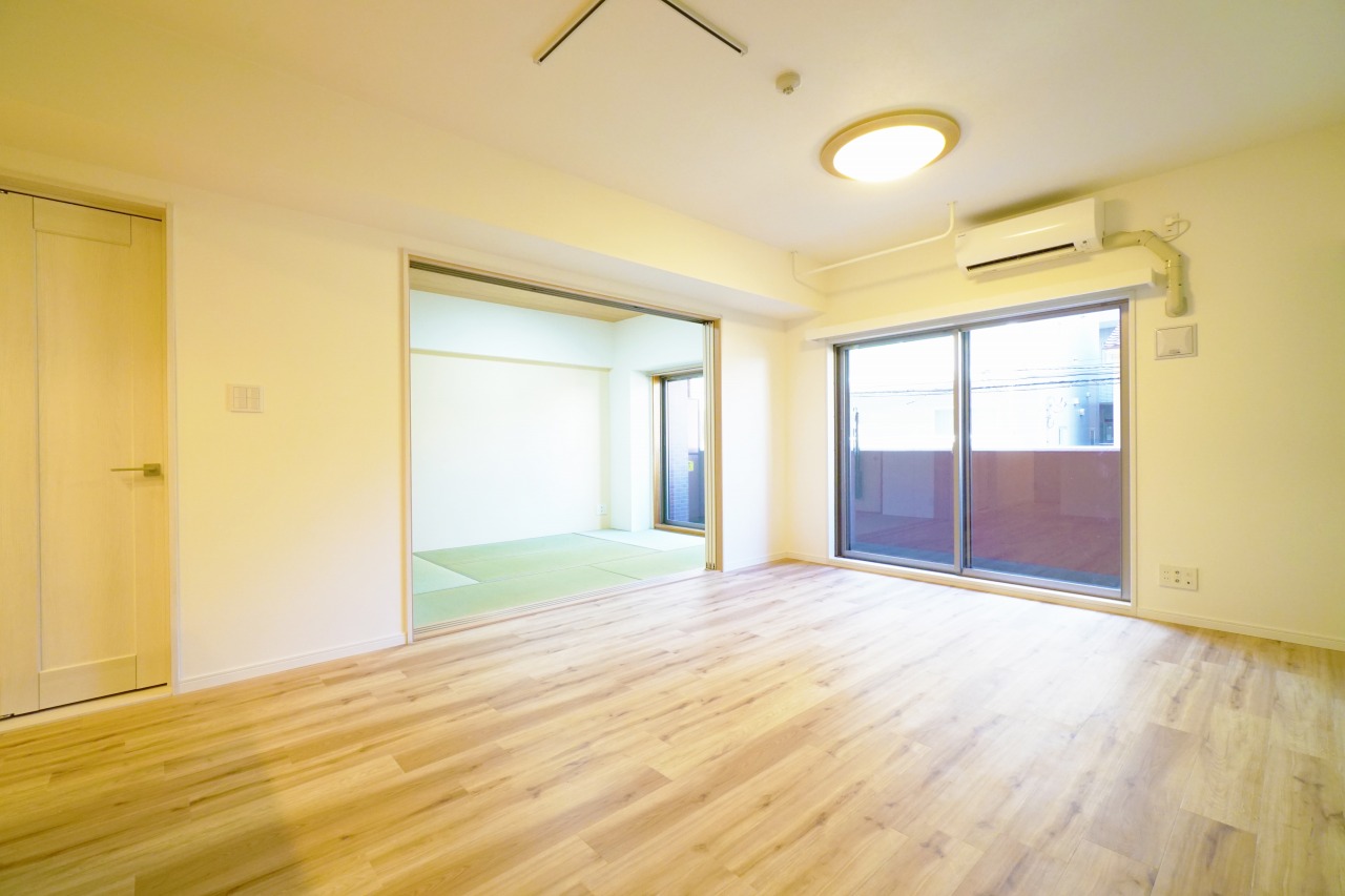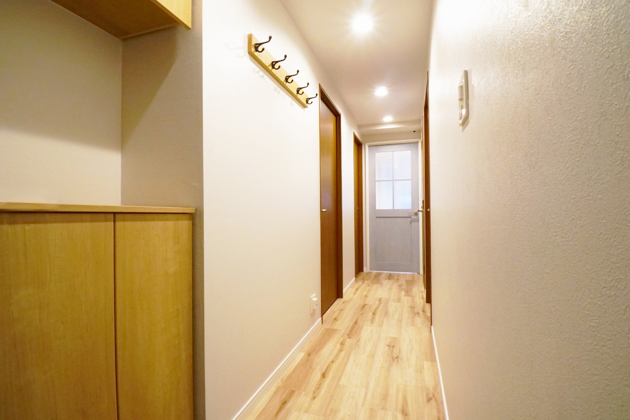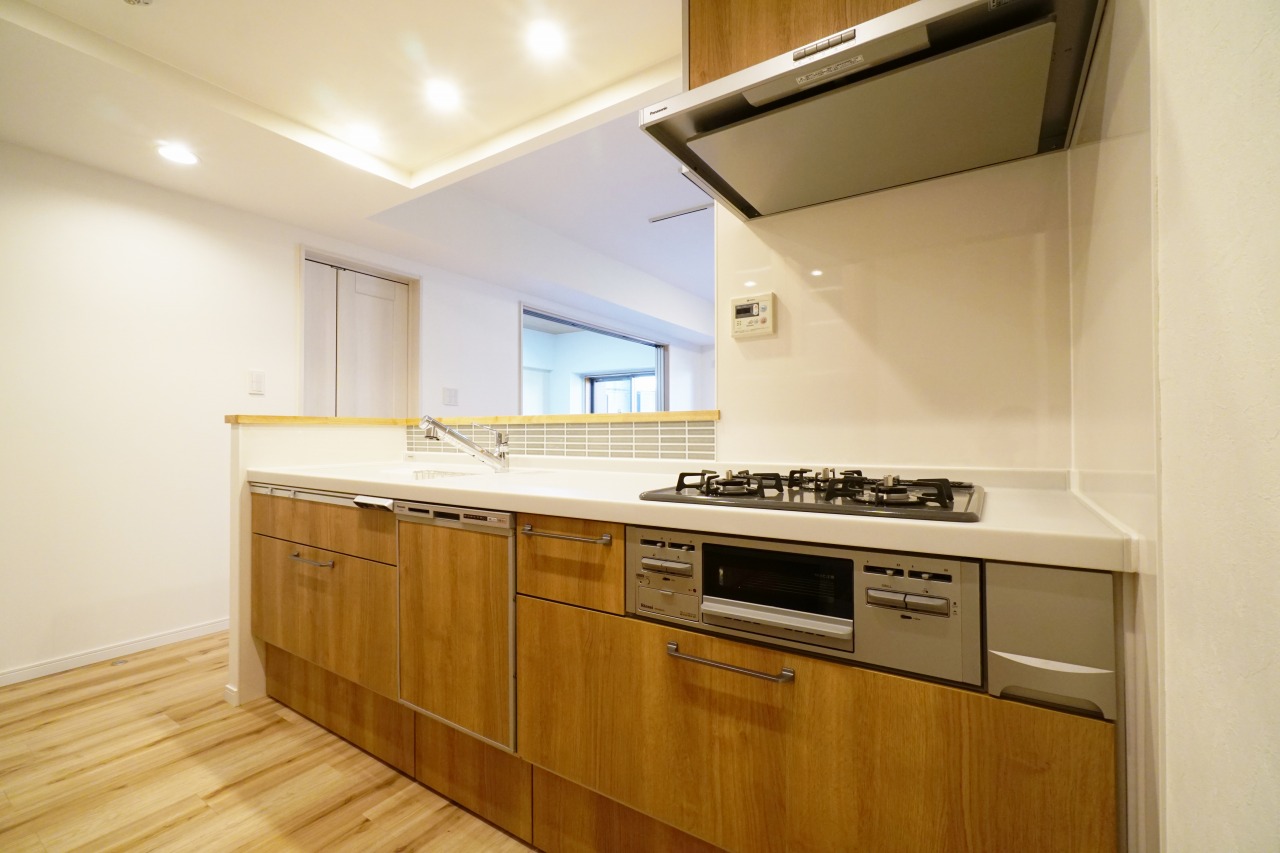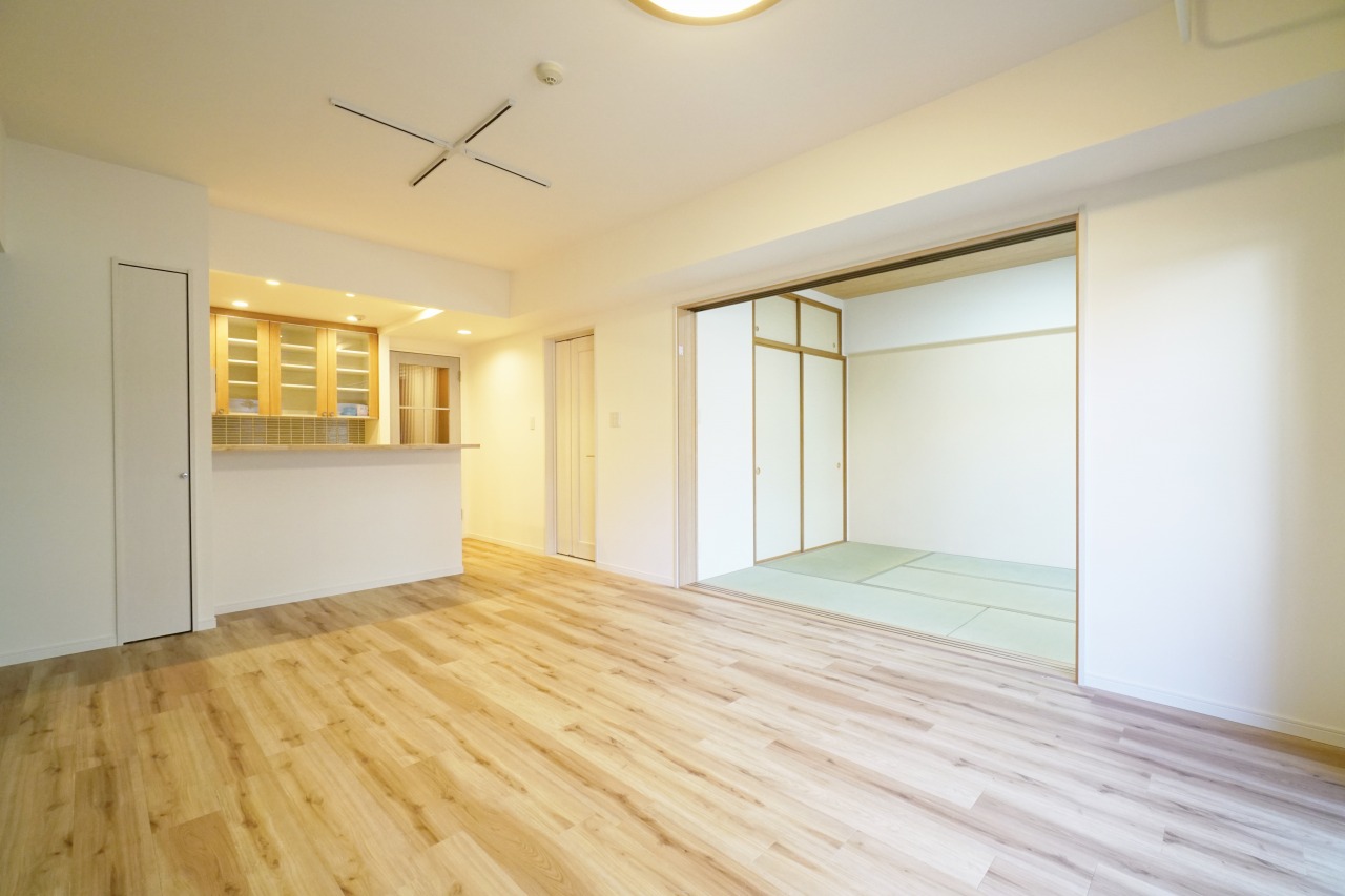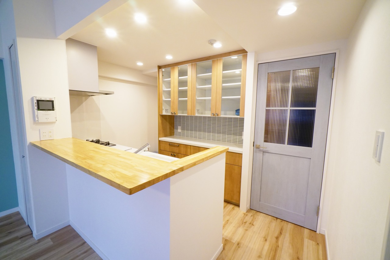 家族が集まるリビングには、一面だけ水色のアクセントを入れ、 優しい色合いがファミリーで心地よく過ごせる住まいに仕上がりました。