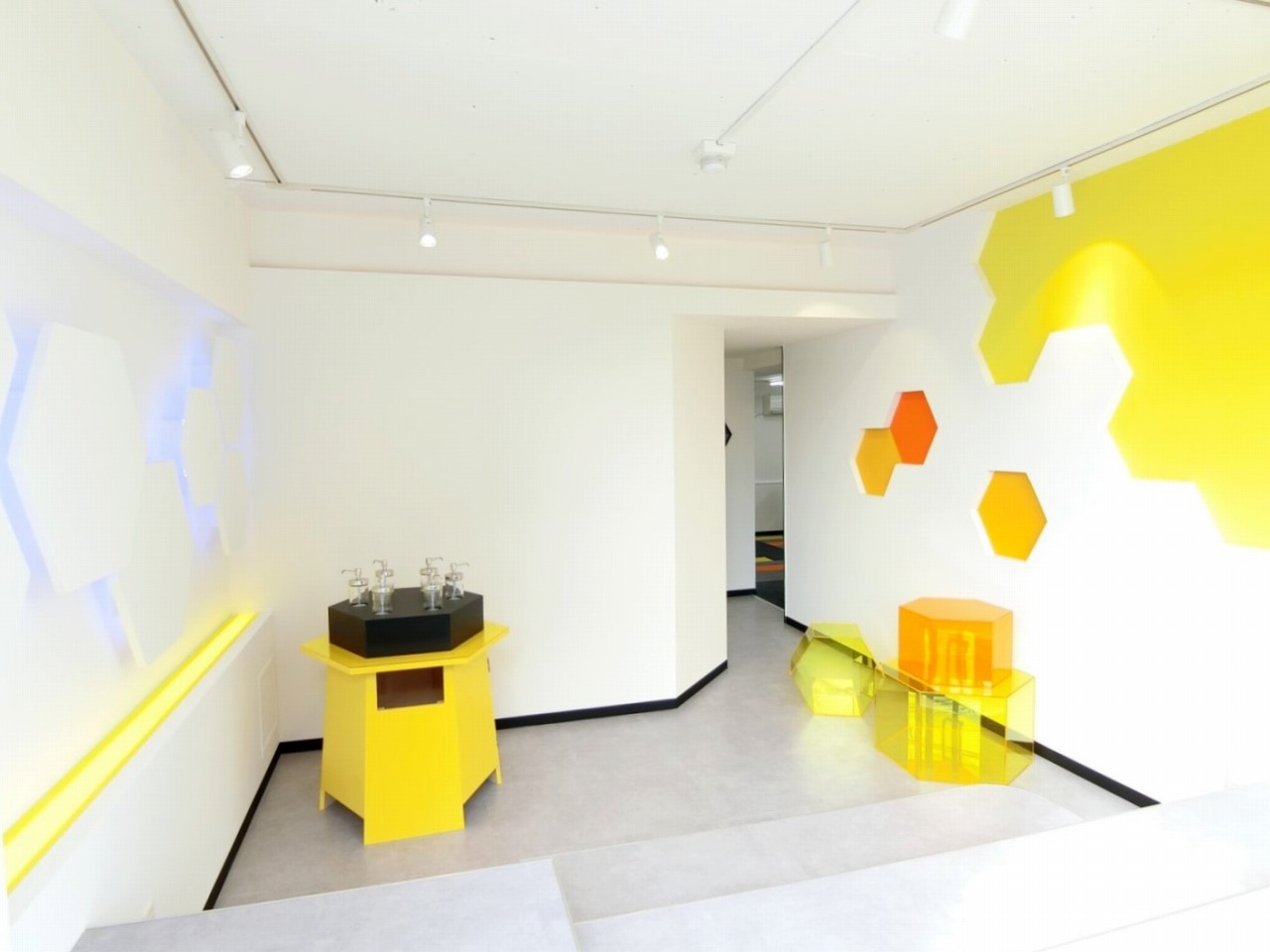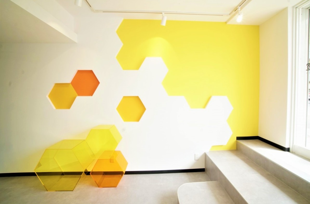 はちみつをイメージした六角形(ハニカム)デザインをポイントで配置。