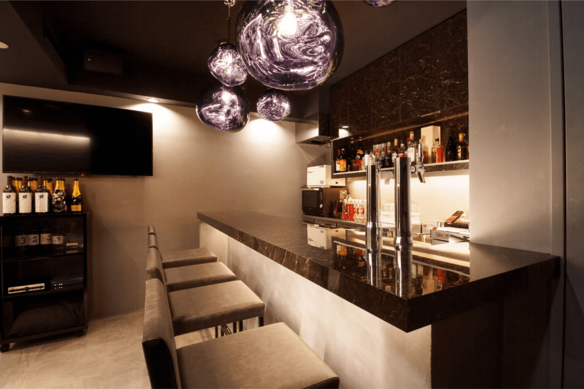 音漏れに配慮した構造と、TomDixonのペンダントライトが映える上質な空間に仕上げました。