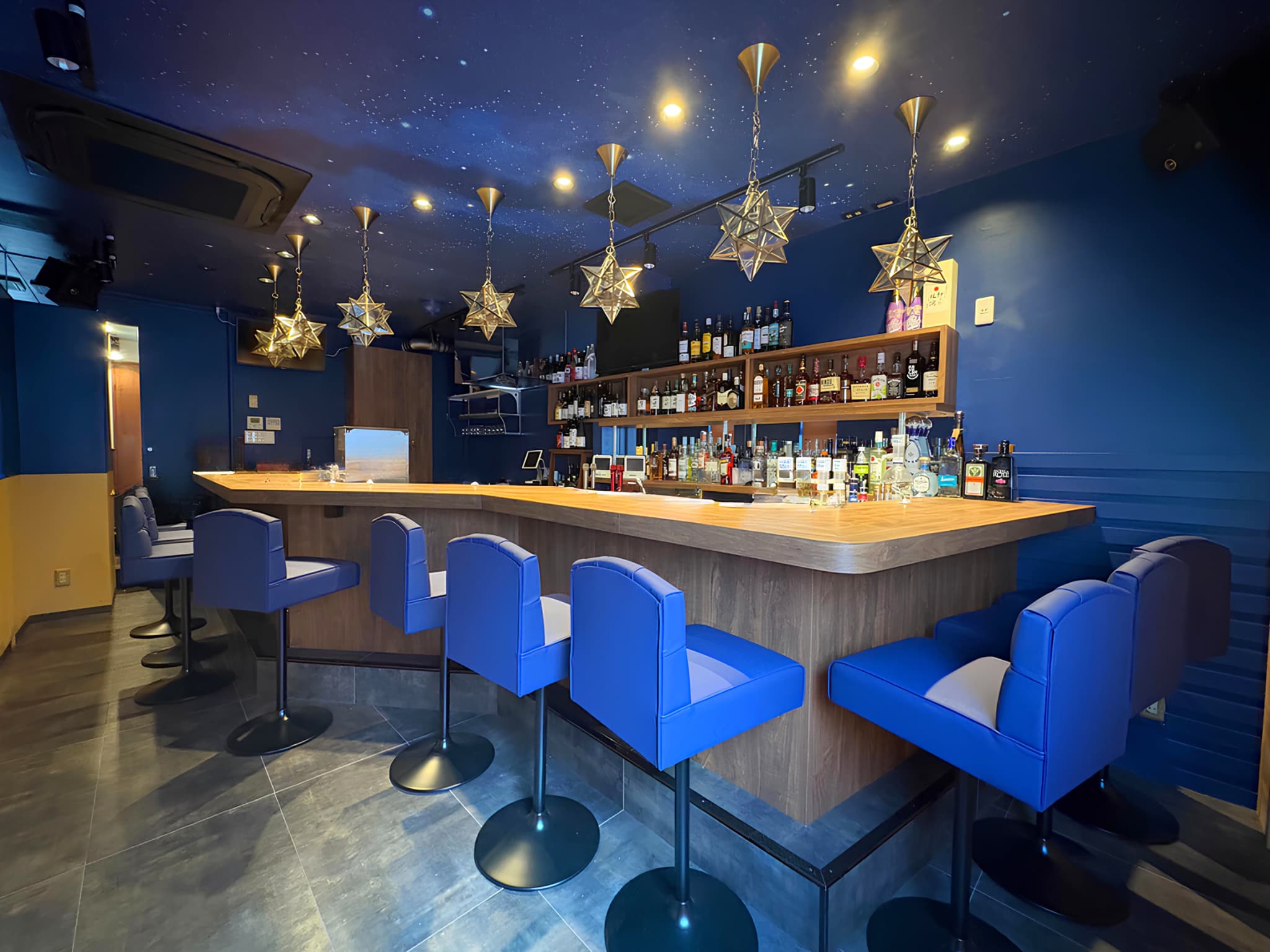 深いブルーの空間に、星形ランプがきらめく”夜空コンセプト”